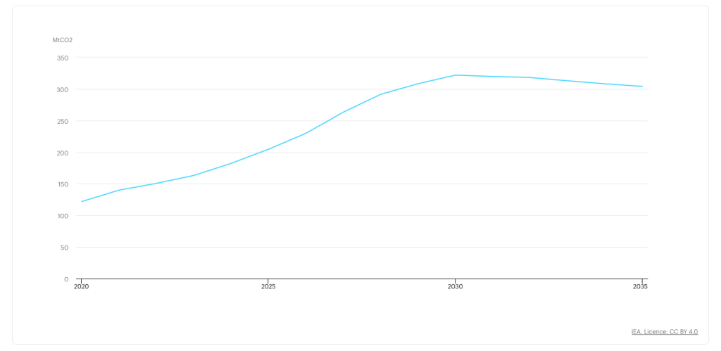 Figure 1: Global data centers CO2 emissions, 2020-2035 (IEA, 2025).